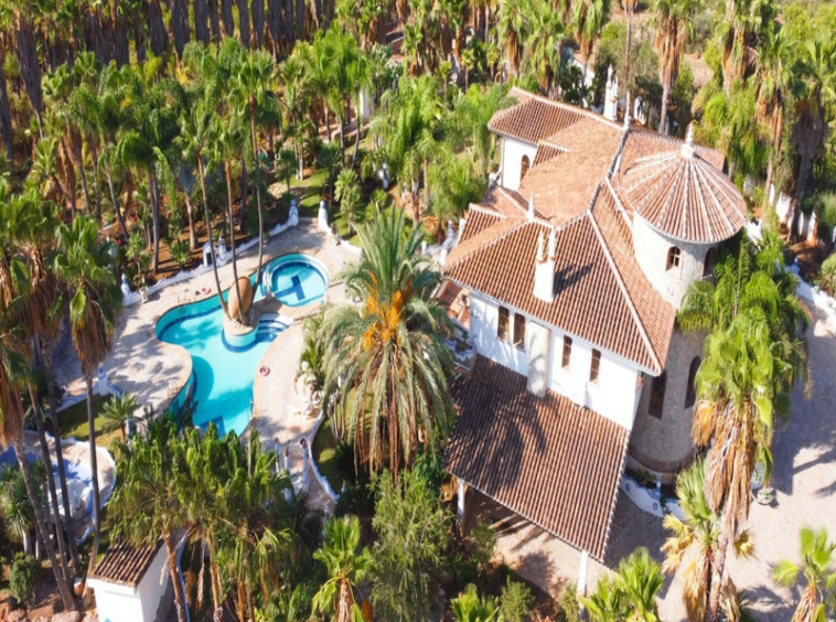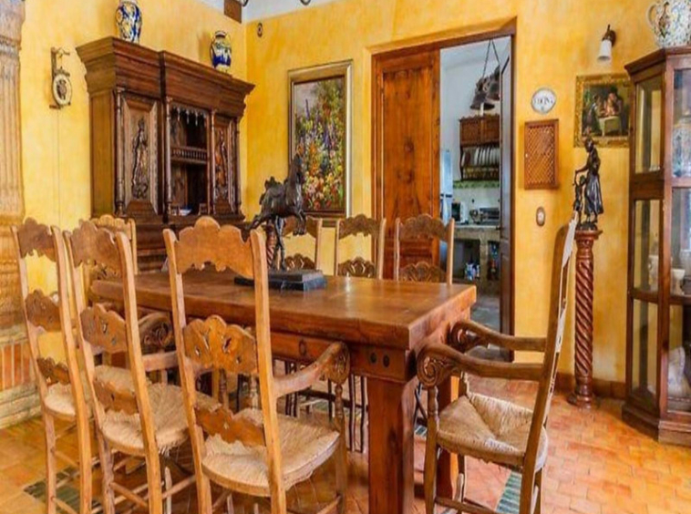 La casa tiene unas dimensiones de aproximadamente 800 m2 construidos y una casita de 100 m2 que se encuentran en una parcela de unos 57.000 m2.
