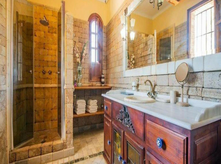 La casa principal se distribuye de una planta baja con un un salón grande con acceso a la terraza cubierta, una cocina muy amplia con su despensa y acceso al porche y a la terraza cubierta, también se encuentra en la misma planta baja un baño turco , piscina interior, ducha y sauna, esta estancia necesita reformas.