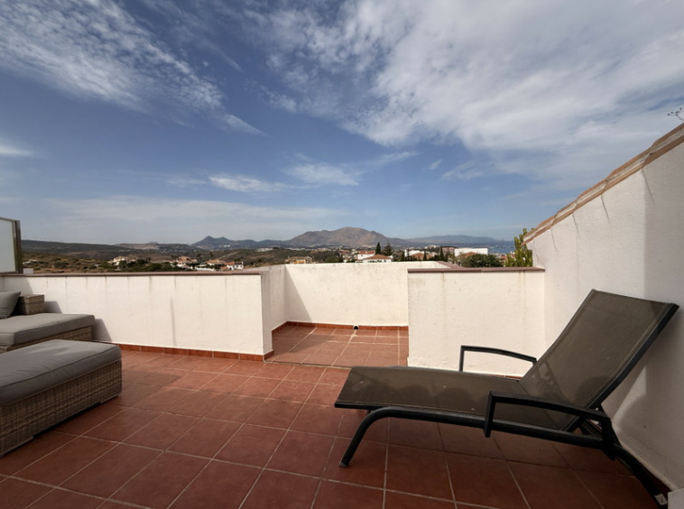 En el exterior, la propiedad ofrece varias terrazas, tanto cubiertas como descubiertas, con impresionantes vistas panorámicas al mar y a la montaña. La urbanización cerrada cuenta con piscina comunitaria, jardines compartidos y aparcamiento libre dentro del recinto, brindando seguridad y tranquilidad.