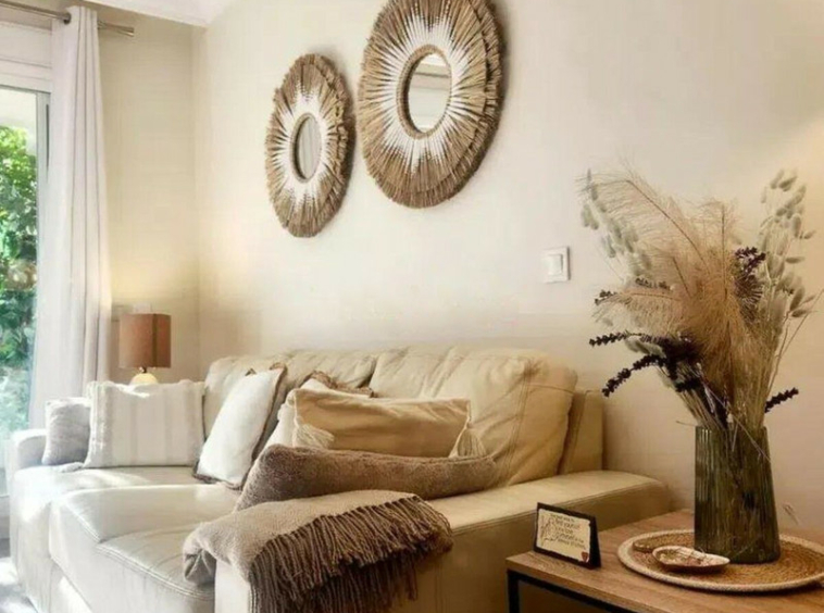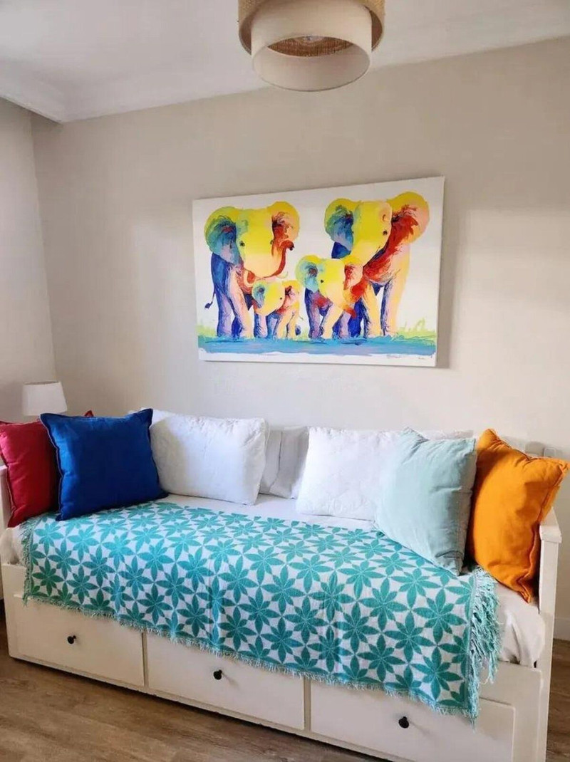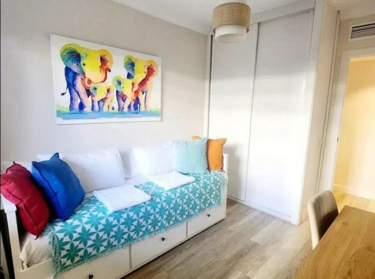 Esta vivienda destaca por su comodidad y distribución práctica. Dispone de una cocina de diseño contemporáneo, equipada al detalle y conectada con un salón muy luminoso que se abre directamente al jardín privado. Desde aquí se disfrutan agradables vistas a la piscina y a las zonas verdes de la urbanización, siempre impecables.