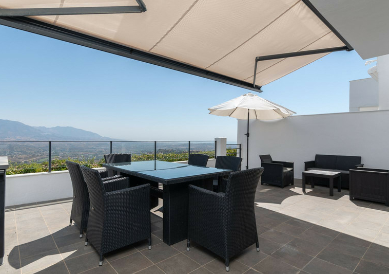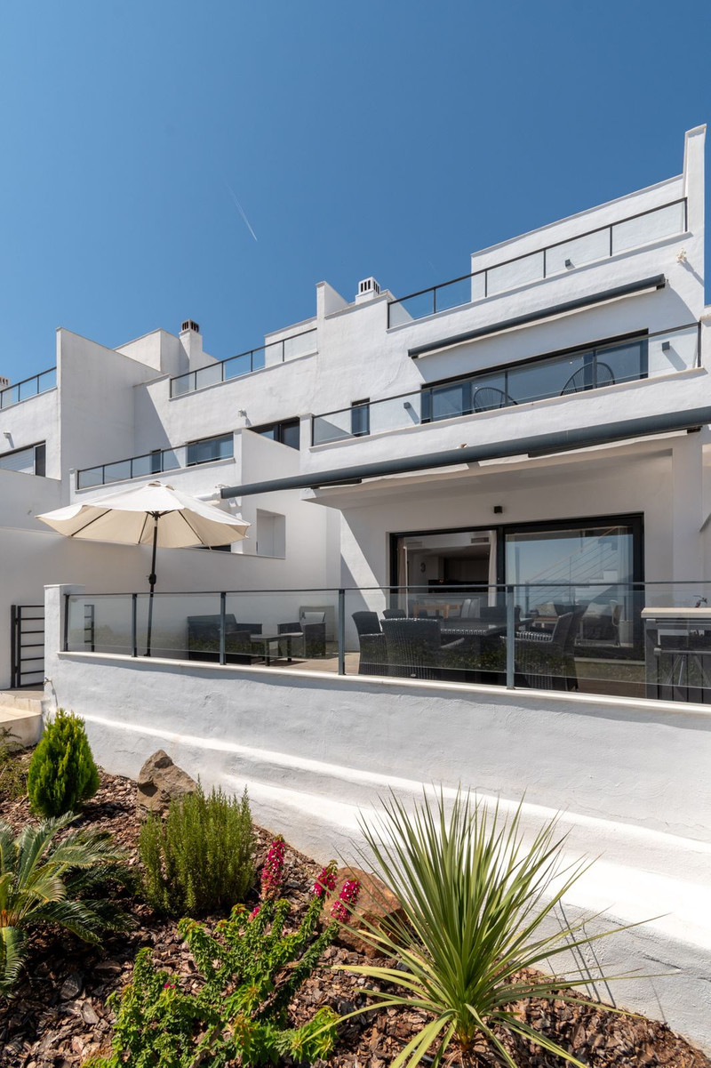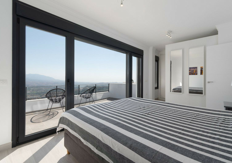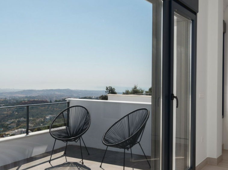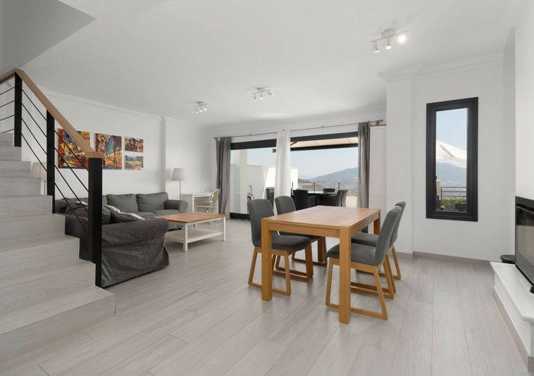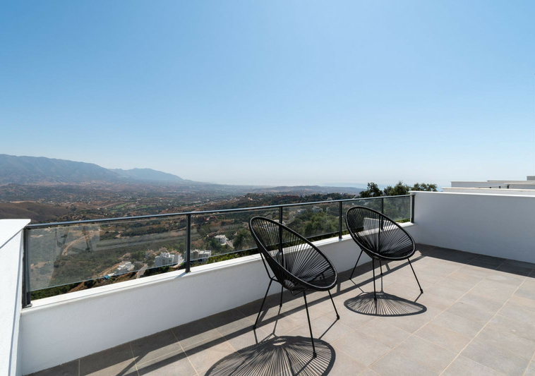 Este amplio adosado en esquina se encuentra en una zona residencial tranquila de La Mairena, en las colinas sobre Elviria. Rodeado de naturaleza y sin vecinos directos en uno de sus lados, la propiedad ofrece impresionantes vistas de 180º al mar Mediterráneo y a la montaña, con orientación este y noreste que garantiza una excelente entrada de luz natural durante todo el día.