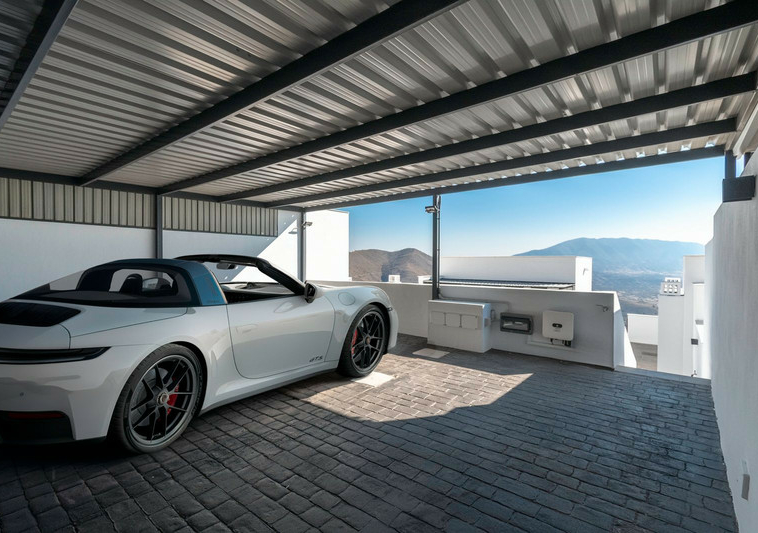 – 10 paneles solares discretamente instalados en el techo del garaje