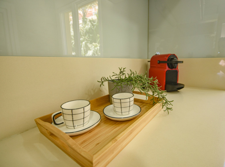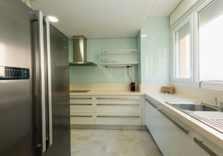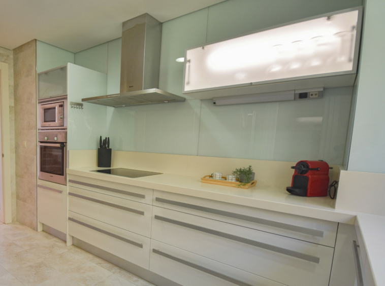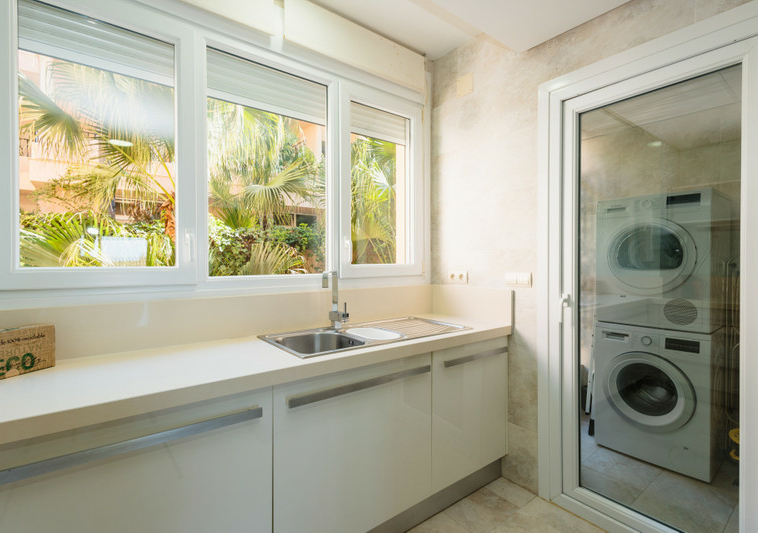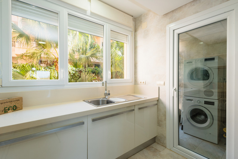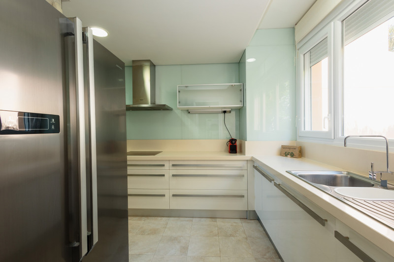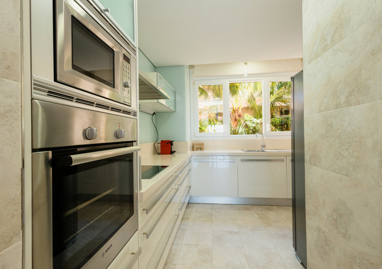 La cocina está totalmente equipada con microondas, frigorífico dos puertas, horno, lavavajillas, hervidor de agua, tostadora, etc. en la misma cocina hay un cuarto en el cual está la lavadora y gran espacio para la plancha.