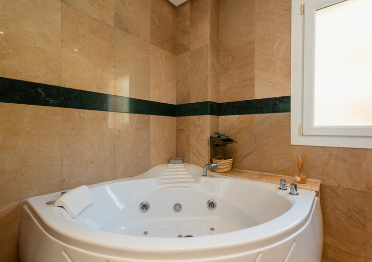 Los 3 dormitorios de están equipados con una cama king size, baños en suite con ducha de lluvia, bañera y doble lavabo.