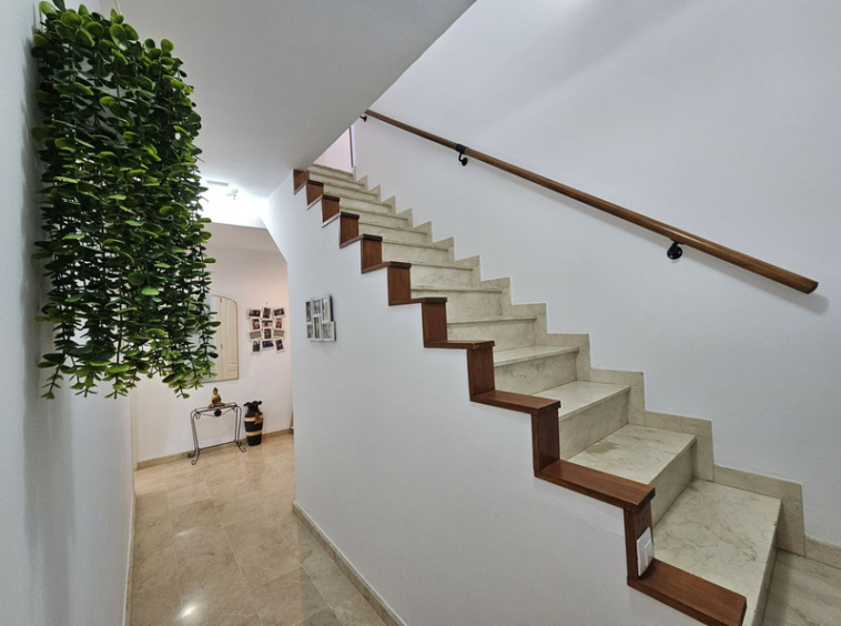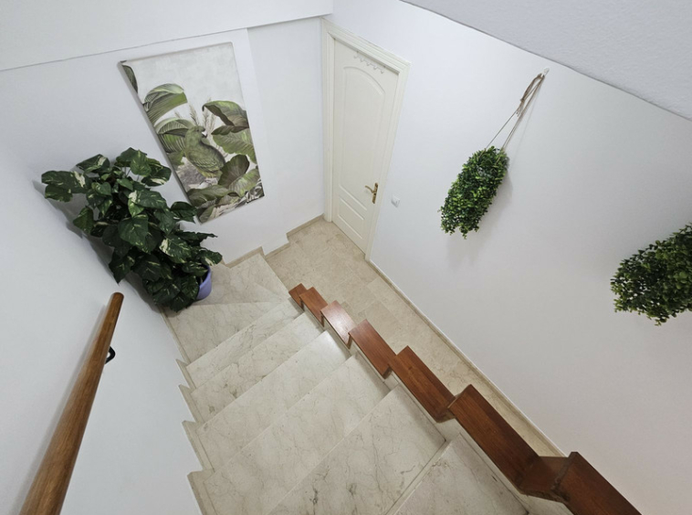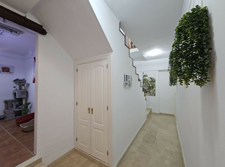 En la planta baja también encontrará dos dormitorios de buen tamaño con armarios empotrados y baños en suite. Además, cuenta con un amplio lavadero y trastero. Las habitaciones son siempre frescas, y todas las estancias y terrazas disponen de persianas y aire acondicionado. En la primera planta, hay un aseo de invitados, cocina independiente, salón-comedor y una terraza de 20 m² orientada al sur. Desde aquí, una escalera de caracol conduce a otra terraza privada de 30 m² con vistas increíbles, ¡incluso al mar! La propiedad incluye una plaza de garaje privada en el precio. ¡Acceda directamente a su hogar desde su propio aparcamiento!