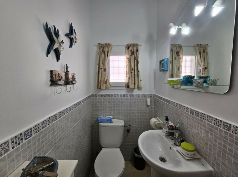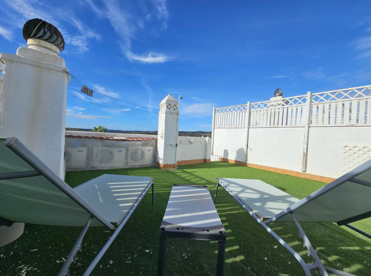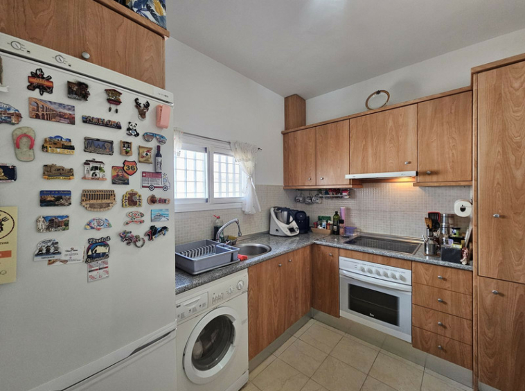 La entrada desde el aparcamiento se encuentra en la planta baja. En esta planta encontrará dos dormitorios, ambos con baño privado. Los dos dormitorios son amplios y dan a una terraza orientada al suroeste. Hay una gran piscina comunitaria y también una piscina infantil. La zona de la piscina comunitaria cuenta con duchas.