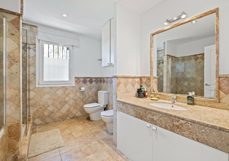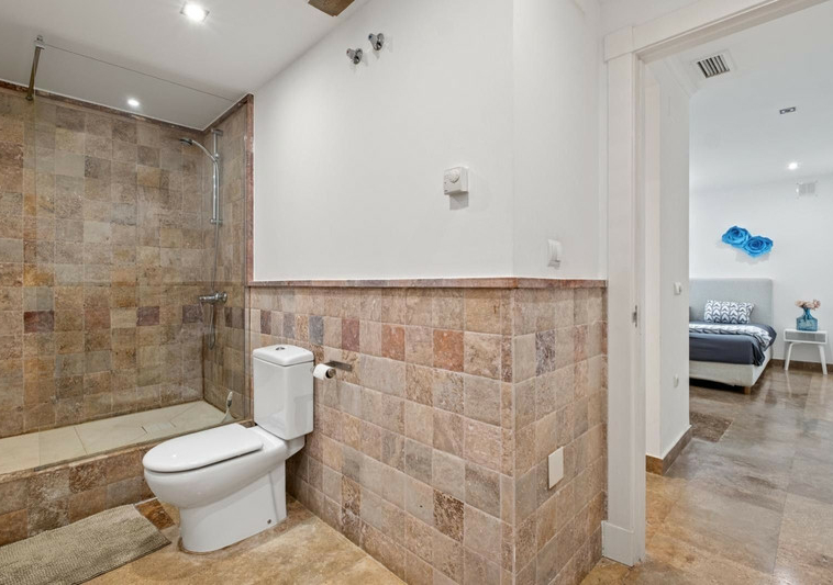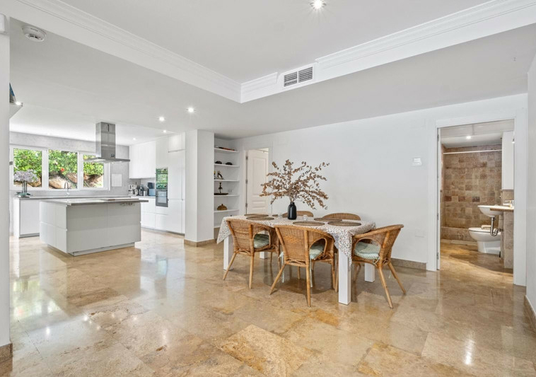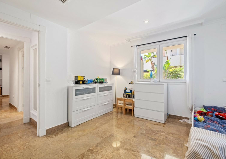 Amplio apartamento en planta baja con 184 m² construidos y 70 m² de terrazas, de estilo mediterráneo clásico, que combina elegancia y comodidad. Se encuentra en una ubicación privilegiada, cerca del mar y de la playa. Esto lo convierte en una buena opción para quienes disfrutan de la costa. El apartamento tiene tres amplios dormitorios, dos de ellos con baño en suite y un tercer baño con aseo para invitados. Todos los baños tienen calefacción por suelo radiante.