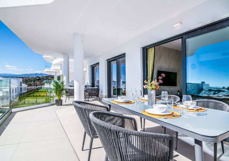 Apartamento contemporáneo de 2 habitaciones en Las Lomas 2, Reserva del Higuerón. Con sus generosos 111 m² de espacio habitable moderno y una amplia terraza de 28 m² con impresionantes vistas al mar, esta vivienda está diseñada para cautivar.