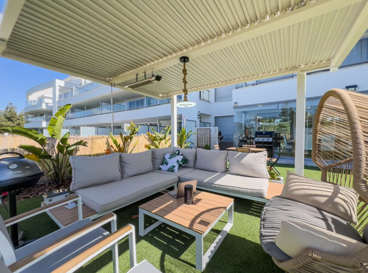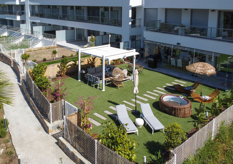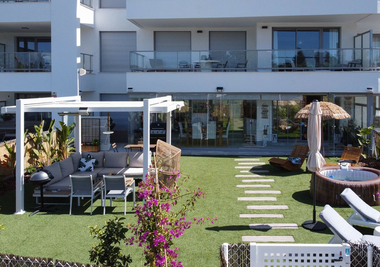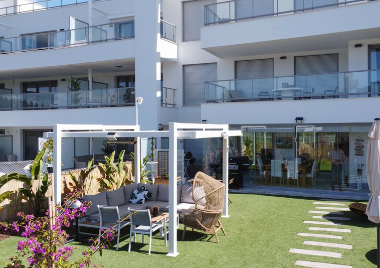 Apartamento de 3 dormitorios a estrenar con un amplio y soleado jardín. Esta propiedad cuenta con 3 amplios dormitorios y 2 baños. La comunidad ofrece instalaciones de lujo que incluyen piscina cubierta, varias piscinas al aire libre, gimnasio, pistas de pádel y mucho más. La propiedad se puede vender completamente amueblada, ¡así que solo tiene que traer su maleta! El jardín está completamente equipado con sistema de riego, jacuzzi y una hermosa zona de estar con pérgola. Los alrededores tienen mucho que ofrecer, con La Cala de Mijas y Fuengirola a solo 5 minutos en coche. Puede caminar hasta la playa en 10 minutos. Contáctenos ahora para reservar su visita.
