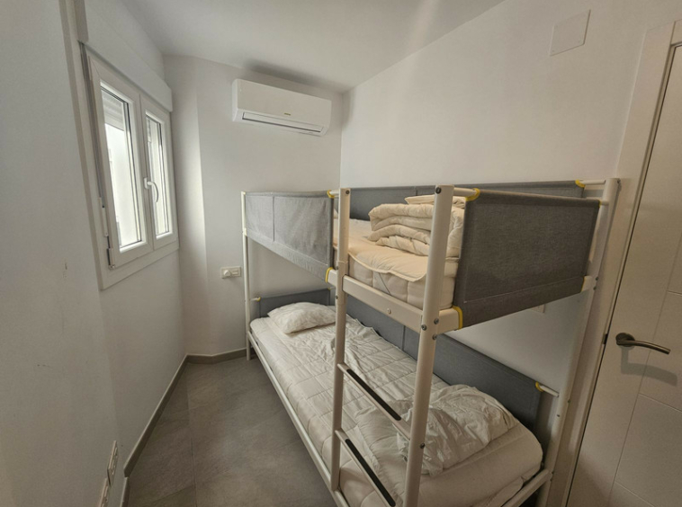 El dormitorio principal es espacioso, mientras que el segundo dormitorio actualmente cuenta con una litera, pero podría caber una cama doble si se necesita. Ambos dormitorios comparten un baño en perfecto estado, con ducha y bañera, lo que ofrece practicidad y comodidad para toda la familia. La propiedad también cuenta con un balcón con espacio suficiente para una mesa pequeña y dos sillas, el lugar perfecto para relajarse y disfrutar del buen tiempo. Vídeo disponible bajo petición. ¡Tenemos las llaves, así que las visitas son muy fáciles!
