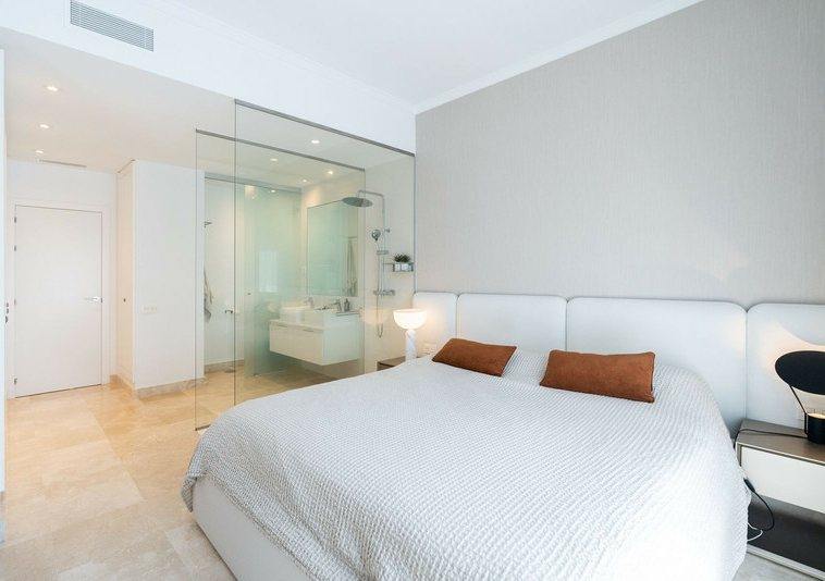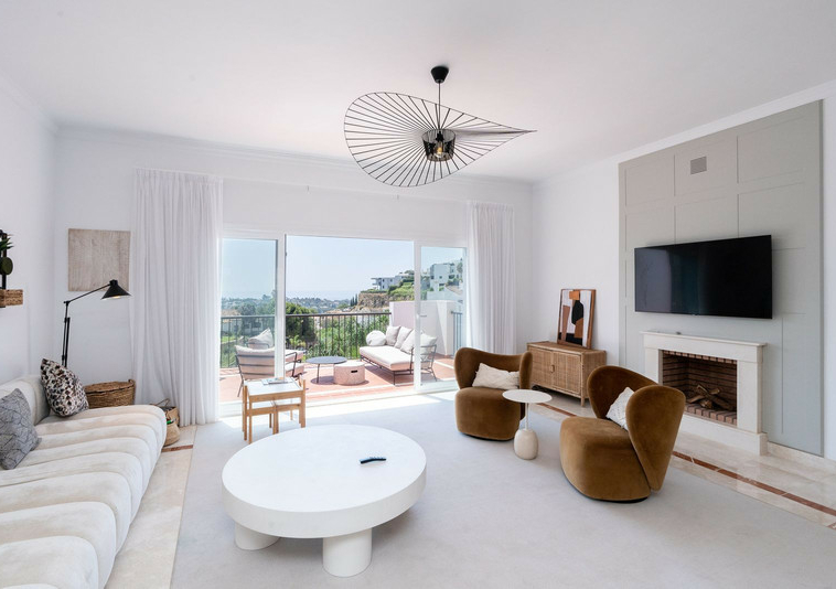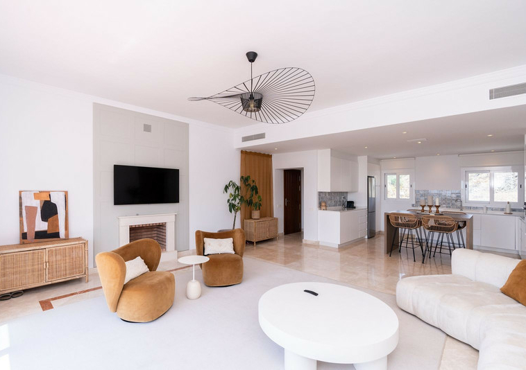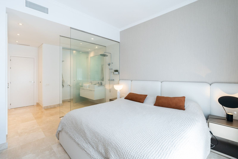 Tiene dos amplios dormitorios y dos baños, uno Ensuite, además de un gran salón comedor con chimenea, muy luminoso, con una cocina de concepto abierto, desde la entrada hay un acceso al solarium privado, una gran superficie con tremendas vistas panorámicas del mar, el golf y la montaña.