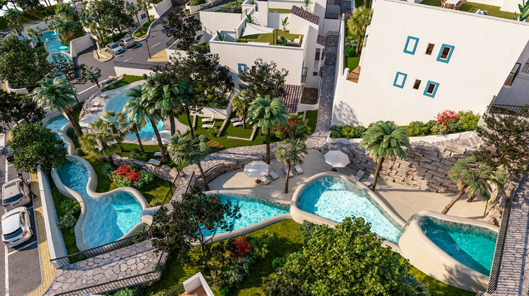 El complejo cuenta con un amplio rango de servicios dentro del mismo, lo que hace de esta urb. un espacio realmente único. Cuenta con amplias zonas ajardinadas, 5 piscinas exteriores, una piscina cubierta climatizada, área de juego para niños, casa club con restaurante/ bar y una tienda con productos locales, gimnasio, SPA con sauna, baño turco y jacuzzi , zona de Crossfit y Yoga, zona de co-working, así como seguridad 24 horas y una cancha polideportiva.