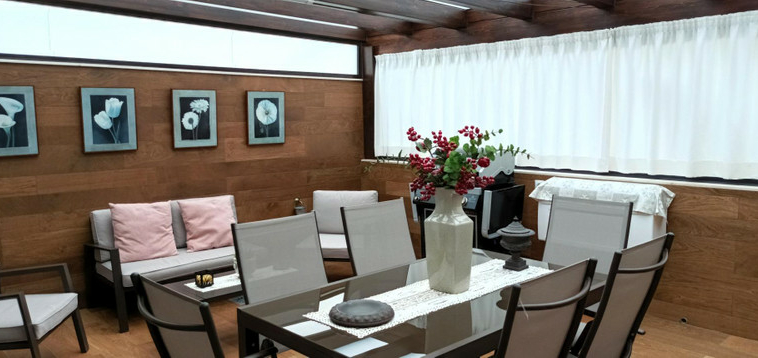 El dormitorio principal tiene acceso a la terraza, el baño está renovado y hay otro dormitorio con un vestidor cómodo. El salón conecta con una terraza acristalada perfecta para todo el año, tiene hasta aire acondicionado! Y viene con garaje y trastero incluidos en el precio.