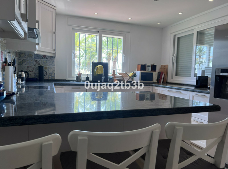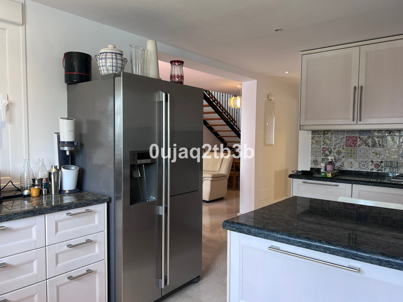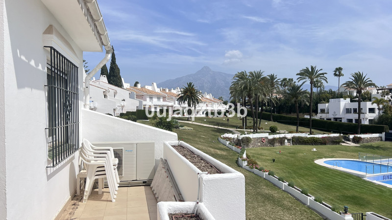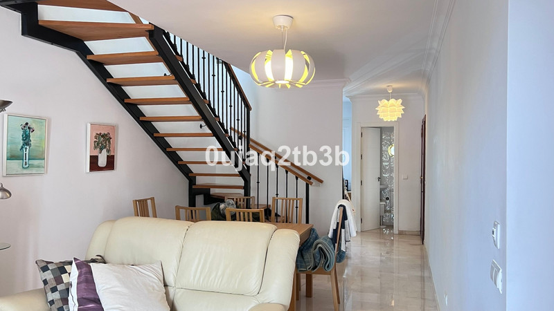 Apartamento en una de las urbanizaciones mejor valoradas de la zona. Cerrado con grandes zonas comunes, enorme piscina de adultos y niños separadas, pista de tenis. A poca distancia andando de Puerto Banús y Centro Plaza donde puede encontrar todos los servicios necesarios. Rara oportunidad de comprar un dúplex con 4 habitaciones en este complejo. Reformado con muy buenas calidades listo para entrar. Orientación Este con vistas a la piscina, jardín y parcialmente al mar. Incluye aire acondicionado, suelo radiante y ventanas eléctricas. Distribuido en dos plantas donde la habitación en-suite se encuentra en la planta baja sin necesidad de subir escaleras. En esta planta también encontramos el salón comedor con chimenea, un aseo, la amplia cocina con mucha luz natural y una zona de oficina donde poder teletrabajar. En la planta alta un gran distribuidor da acceso a tres amplias habitaciones, dos baños y dos terrazas siendo una de ellas privada y con preciosas vistas.