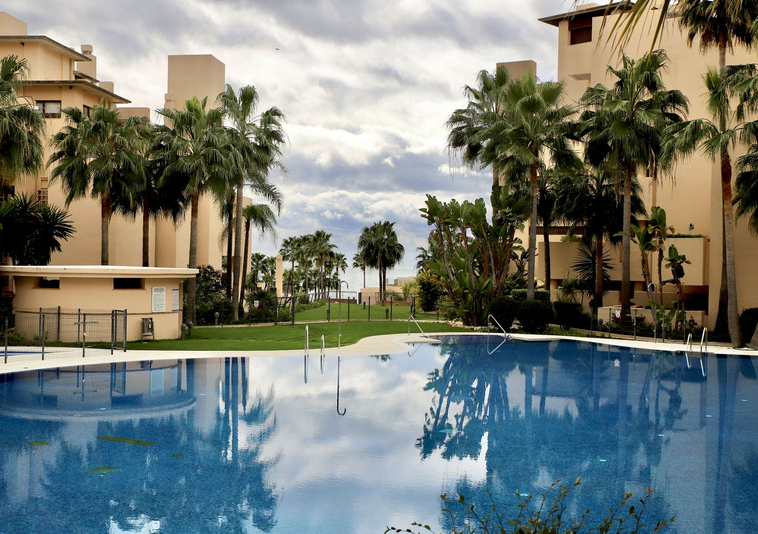 Se vende exclusiva vivienda en la prestigiosa urbanización Bahía de la Plata, una de las más demandadas de Estepona, situada en primera línea de playa dentro de un residencial de lujo con amplias zonas verdes y jardines perfectamente cuidados. Una ubicación privilegiada para disfrutar del estilo de vida de la Costa del Sol, con la tranquilidad del entorno y todos los servicios a pocos minutos. La propiedad cuenta con hall de entrada, cocina con lavadero, salón-comedor amplio y luminoso, 1 dormitorio con vestidor, 1 baño en suite y 1 aseo de cortesía. Destaca su gran terraza cubierta, ideal para relajarse y disfrutar del clima durante todo el año. La urbanización ofrece completas instalaciones: 3 piscinas (una cubierta), sauna, gimnasio y pista de pádel. Además, incluye plaza de garaje y trastero en el precio. Excelente conexión y comodidad diaria: cerca de Carrefour, comercios y restaurantes, y a pocos minutos del reconocido Colegio Privado San José. A tan solo 15 minutos andando del centro de Estepona y su paseo marítimo. Una oportunidad perfecta como vivienda habitual, segunda residencia o inversión. Para más información, fotos o concertar visita, contactar por privado.