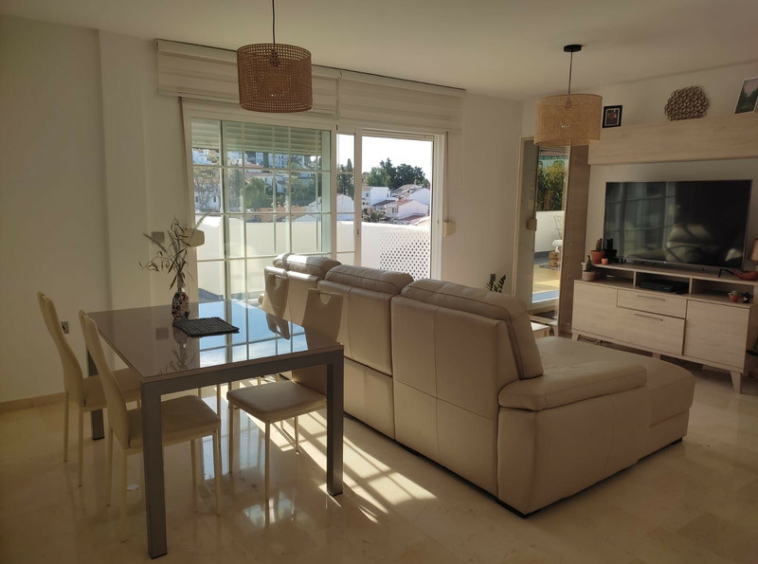 Apartamento reformado en venta en Nueva Andalucía, Marbella. La propiedad cuenta con 3 dormitorios, 2 baños y una orientación sur que garantiza luminosidad durante todo el día. Situado en una comunidad cerrada con piscina y jardines, ofrece un estilo de vida cómodo y seguro.