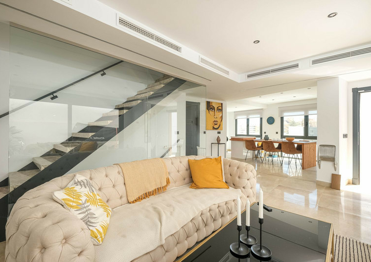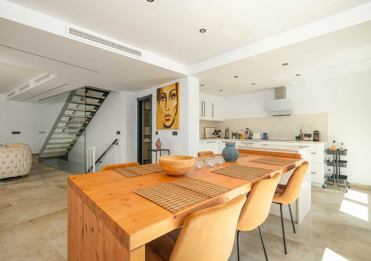 Aire acondicionado integrado, piscina de inmersión en la azotea, lugar para asar, lugar para scooters – padel, etc. y para los que gustan de la ropa y la moda – walk in closet. Si necesitas almacenamiento