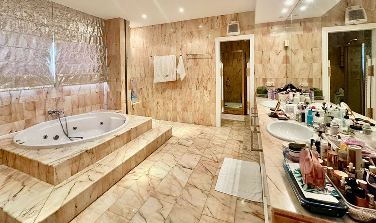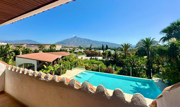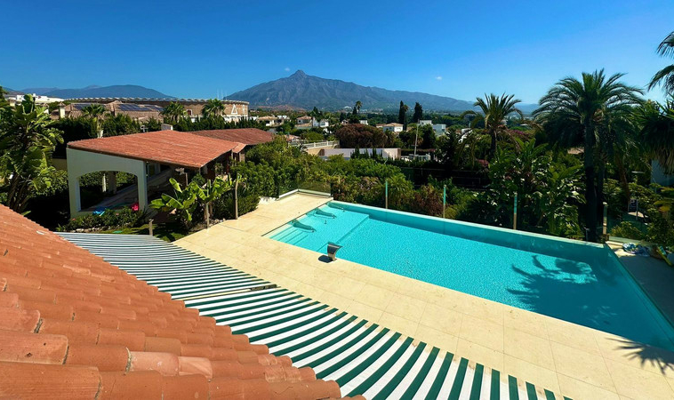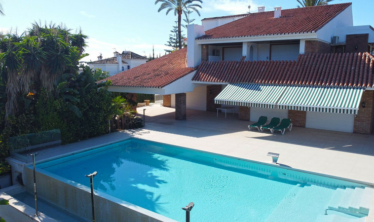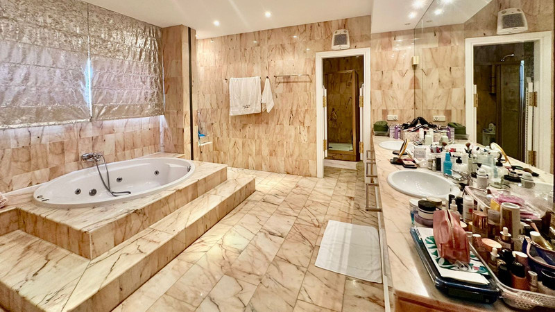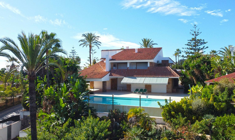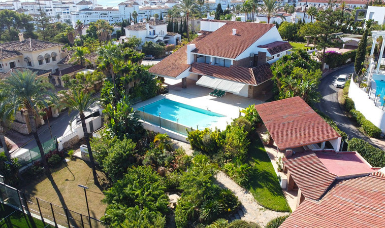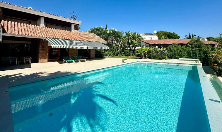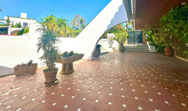 Gran villa en buen estado de conservación, con una superficie construida total de 834 m2 más 573 m2 de terrazas y porches sobre parcela de 4.348 mt2. Construida en 1981. Orientada hacia el Este. La edificación principal consta en planta baja de gran hall de entrada, aseo de invitados, gran salón en 2 alturas, comedor independiente, cocina, cuarto de estar con salida a terraza, un dormitorio con cuarto de baño en suite con salida independiente y acceso de servicio. En planta alta consta de cuarto de estar, segundo dormitorio con salida a balcón y cuarto de baño en suite, tercer dormitorio con cuarto de baño en suite, cuarto dormitorio con salida terraza con magníficas vistas a la Concha y al mar, y gran suite principal compuesta de dormitorio, vestidor y gran cuarto de baño y terraza con vistas. Gran zona de aparcamiento y garaje para 5 vehículos, Otras edificaciones constan de garaje para un vehículo y dormitorio con baño para el chofer y dormitorio con baño para el servicio y cuarto lavandería. Gran zona bar barbacoa con amplia terraza cubierta. Infinity pool. Pista de Paddle. Preciosos jardines con gran número de arboles.