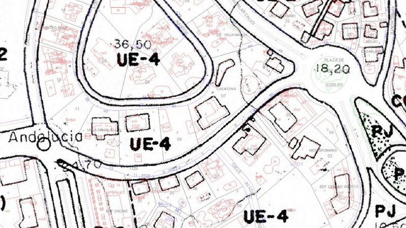 La parcela esta clasificada como suelo urbano consolidado, SUC y calificada como Unifamiliar Exenta UE-4, con parcela mínima de 1.000 m2 y con una edificabilidad del 30%. Debido al alto precio de los inmuebles en la zona, es una propiedad que seguro arrojará grandes beneficios a inversores/promotores que deseen construir hasta 4 villas.