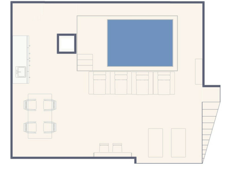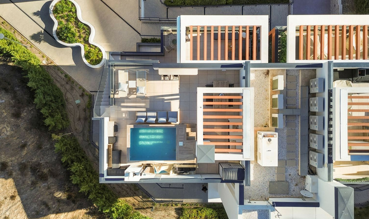 La gran terraza en la azotea, con piscina, jacuzzi, bar y zona lounge, invita a disfrutar de un tentempié por la mañana o una copa al atardecer en este entorno, contemplando el amanecer o el cielo estrellado.