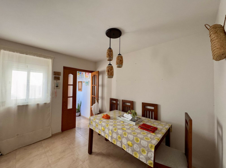 La planta superior cuenta con un luminoso salón, una cocina, un baño y una terraza soleada, perfecta para comer al aire libre o relajarse.
