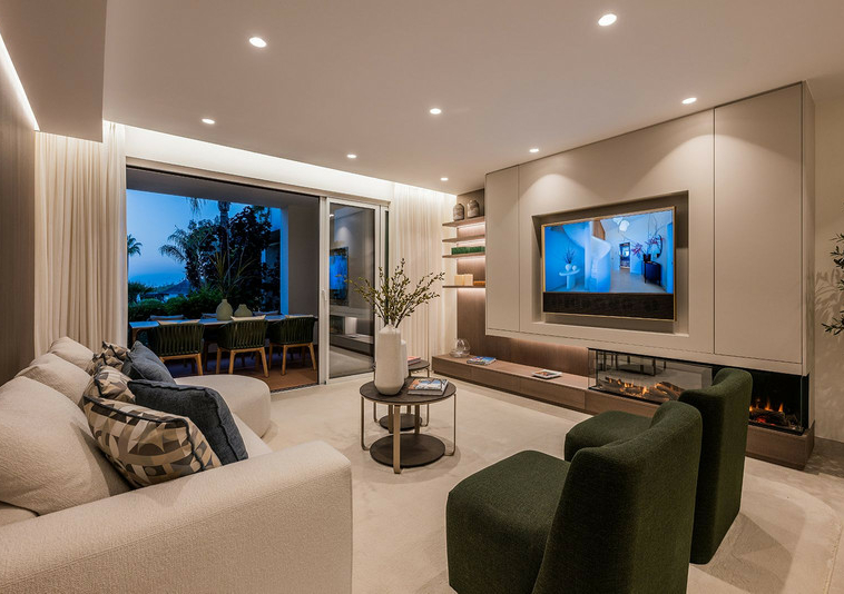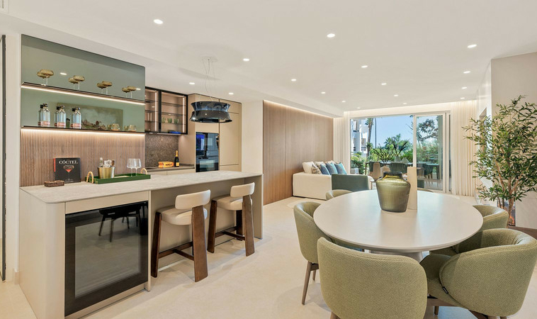 Este impresionante apartamento cuenta con un espacio de estar de planta abierta con mobiliario contemporáneo y acabados de alta gama, incluyendo armarios a medida, suelos elegantes con calefacción radiante, chimenea eléctrica y un sistema de sonido Bang & Olufsen. La cocina de diseño está completamente equipada con invisible Hob algo que la hace diferente e innovadora y la zona de estar abierta conduce a una terraza privada con vistas al mar. Completamente amueblada y lista para mudarme.