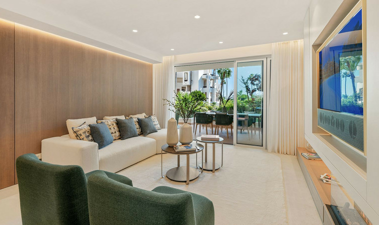 Este apartamento en la planta baja ofrece la combinación perfecta de lujo y tranquilidad; tres dormitorios con acceso a la terraza y vistas, dos baños uno en suite espacioso moderno y lujoso. El apartamento tiene acceso directo a una terraza privada y a exuberantes jardines tropicales. La atmósfera tranquila de la comunidad realza la sensación de serenidad, mientras que el diseño moderno del apartamento garantiza comodidad y estilo.