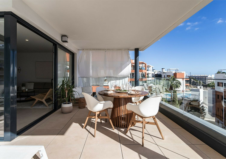 Aquí también disfrutarás de una gran terraza y un balcón con preciosas vistas al mar, lo que hace muy fácil aprovechar el sol durante todo el año. La vivienda incluye dos plazas de garaje y un trastero. La comunidad cuenta con dos zonas de piscina y un gimnasio.