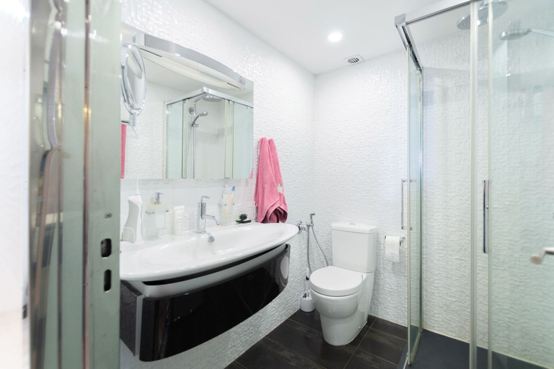 Este apartamento en planta baja ofrece dos dormitorios, dos baños y una terraza de 30 m2.