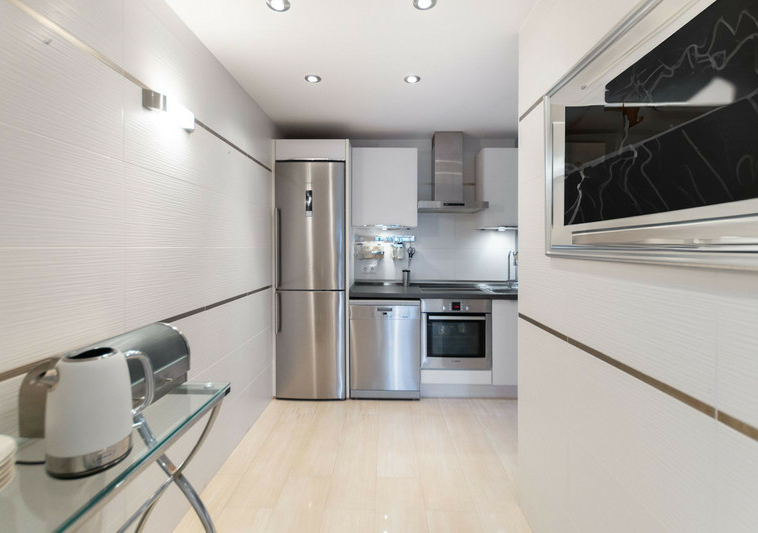 Totalmente amueblado con una decoración moderna, el salón de planta abierta incluye una cocina totalmente equipada.