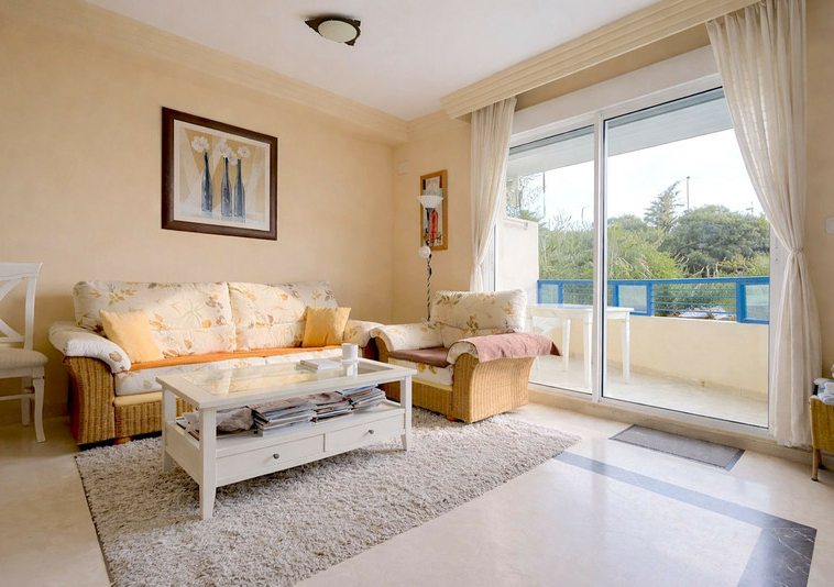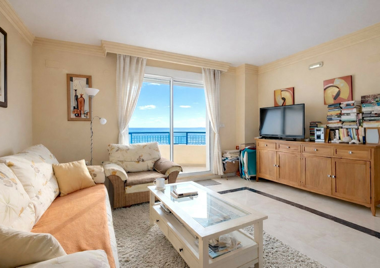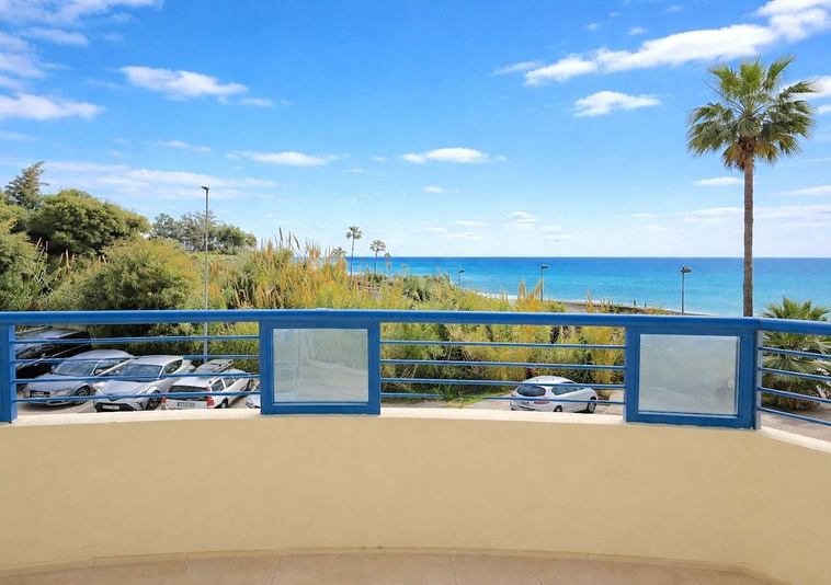 Bonito piso en 1ª línea de playa de Marbella. Tiene 57 m2, 1 dormitorio (armarios empotrados), 1 baño, cocina americana (amueblada y con electrodomésticos), lavadero, salón-comedor y terraza (vistas al mar). Buen estado. Amueblado, aire acondicionado en toda la vivienda, alarma. Recinto cerrado con piscina, jardines y terrazas comunitarias. Situado a la entrada de Marbella, cerca de comercios y del centro de la ciudad. 1ª planta ( muy alta para ser una 1ª). Playa a unos 30 metros.