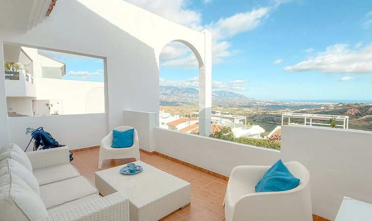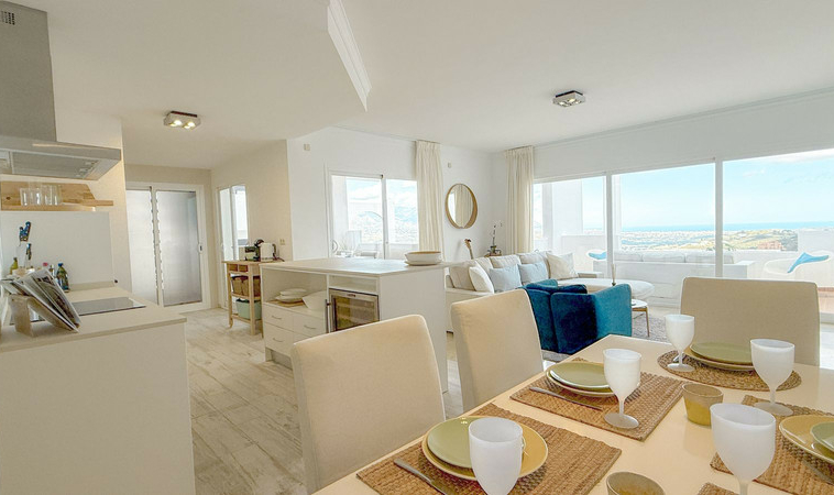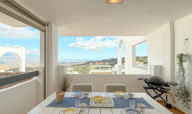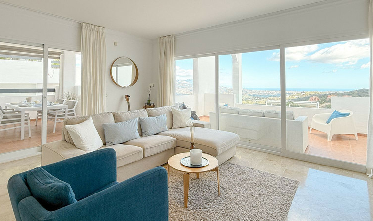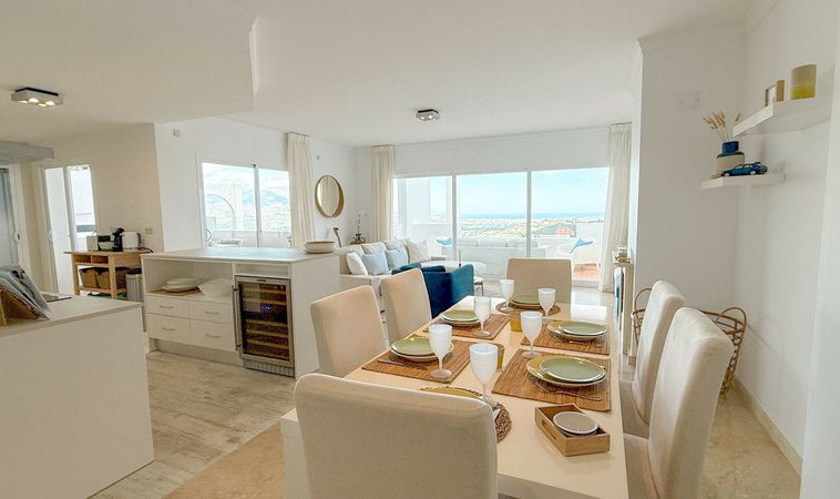 Este increíble apartamento de estilo escandinavo ofrece vistas panorámicas al mar y, sin embargo, está a solo 10 minutos en coche de todos los servicios y las playas de Elviria.
