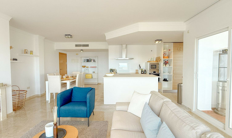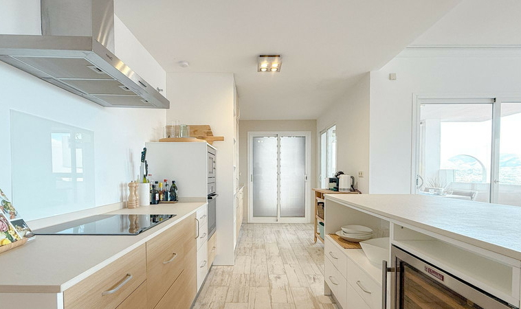 Este apartamento recien renovado le sorprenderá por la abundancia de luz y aire que entra en el salón. La cocina, recien renovada, es estilo americana con lavadero y todos los electrodomésticos de alta gama, incluyendo nevera para vinos e isla de cocina con barra de desayuno. Desde el luminoso salón se accede a dos terrazas: una gran terraza abierta y otra terraza cubierta para comer.