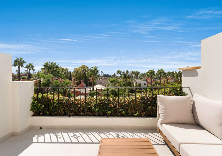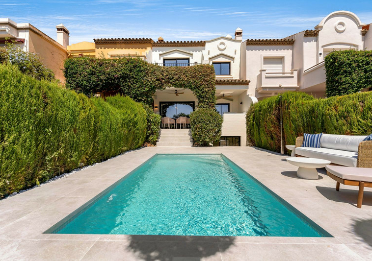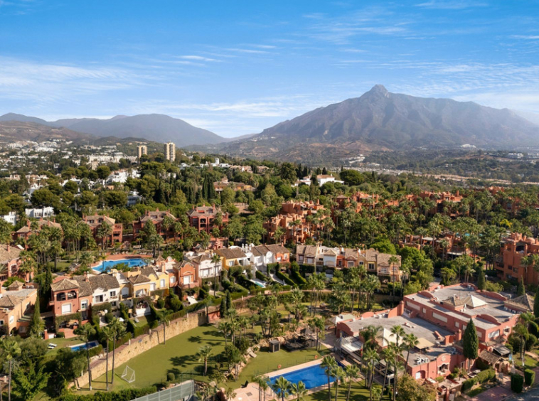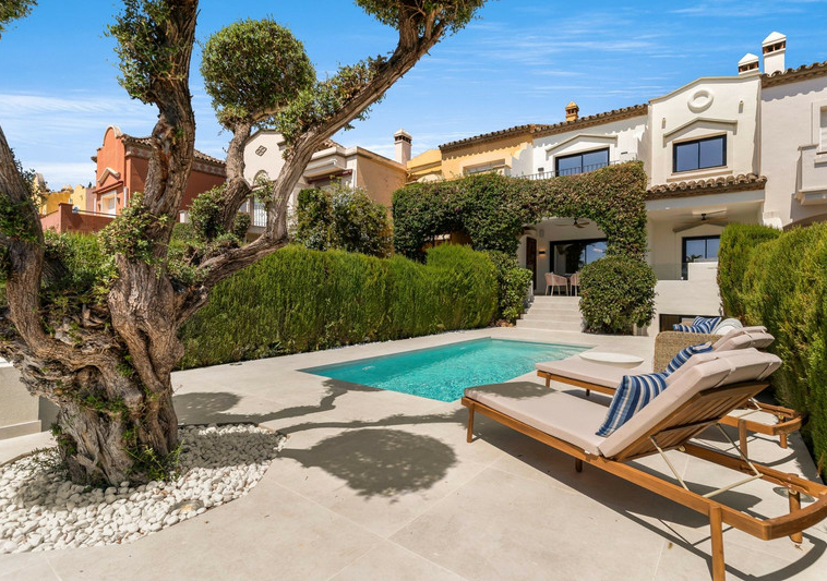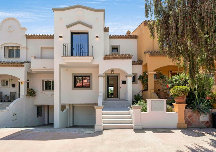 Casa adosada de cuatro dormitorios situada en Nueva Andalucía, Marbella. Una fantástica comunidad con calles tranquilas, amplio aparcamiento y seguridad las 24 horas. A solo unos minutos de la playa y del estilo de vida al aire libre de Puerto Banús.