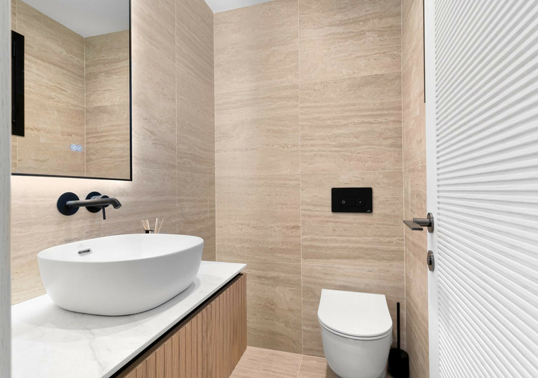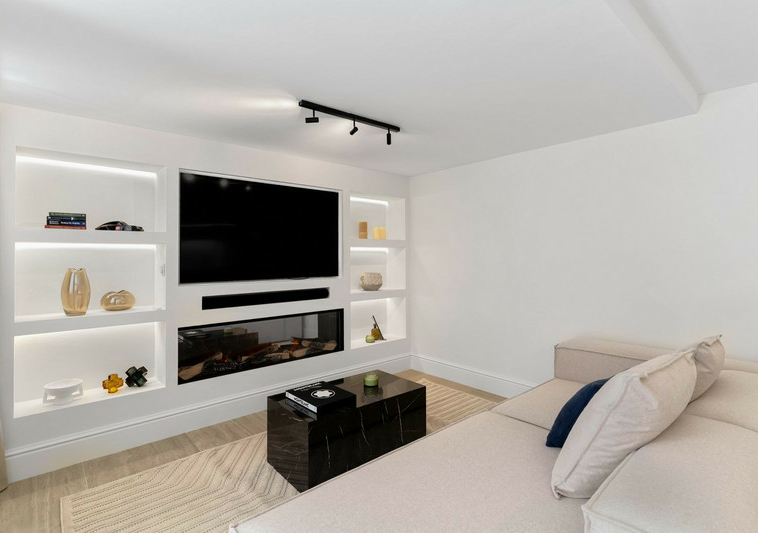 Se completa con un fantástico sótano con acceso independiente desde la parte delantera de la casa. Cuenta con su propia cocina, baño, vestidor y pared multimedia hecha a medida con chimenea. El acceso independiente adicional a la piscina desde el sótano es una característica única que solo tiene Vasari 25 en comparación con las casas de los alrededores, una característica que llena el sótano de luz natural. En este nivel también se encuentra un lavadero adicional, fuera de la vista de las zonas de estar, junto con un garaje cerrado y una plaza de aparcamiento.