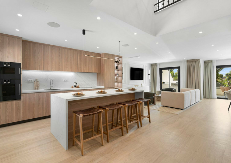 La propiedad ha sido completamente renovada por un promotor local profesional, incluyendo nuevas instalaciones de fontanería y electricidad con certificación, sistemas de aire acondicionado, ventanas y puertas, tres cocinas y lavadero de Porcelanosa, cinco baños de Porcelanosa, puertas de roble macizo en toda la vivienda y armarios y muebles hechos a medida. Orientada al «sur verdadero», esta casa disfruta del sol desde el amanecer hasta el atardecer.