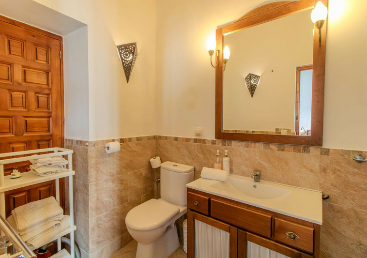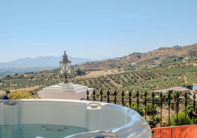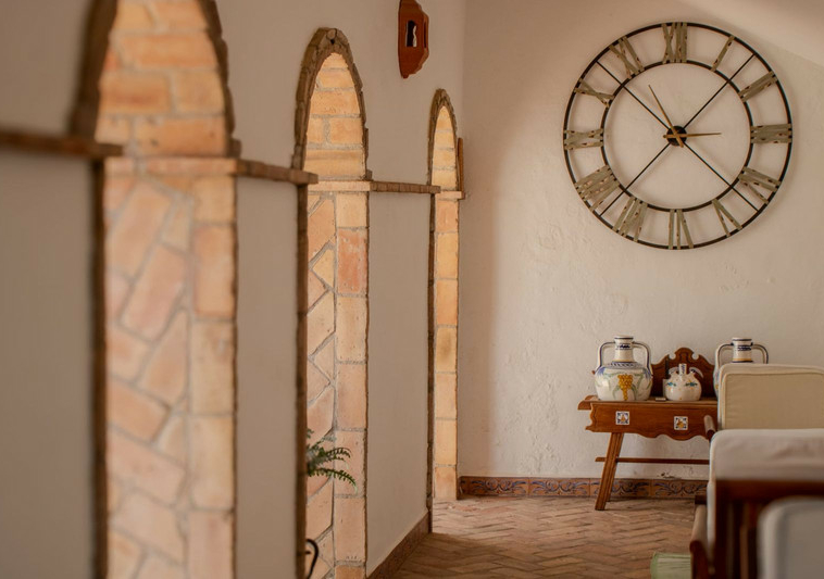 En el exterior, varias terrazas proporcionan sol, sombra y privacidad. La zona cerrada de salón y bar es perfecta para cenar al aire libre y recibir invitados, mientras que la terraza superior, con vistas panorámicas de la sierra de El Hacho, el campo y la torre de la iglesia, cuenta con un jacuzzi y asientos para relajarse al atardecer.