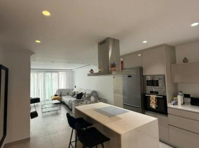 Planta baja cocina americana abierta al salón, aseo y amplia terraza con piscina de 2×3 metros de agua salada, cochera independiente