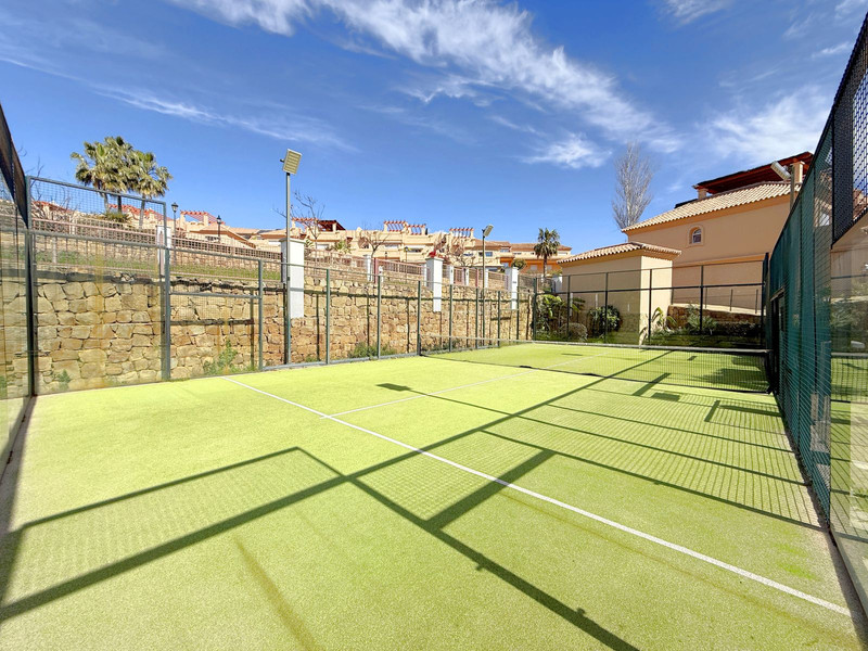 El residencial destaca por sus cuidados jardines con palmeras tropicales y una espectacular piscina comunitaria con forma de lago, creando un ambiente relajante y exclusivo. Además, la comunidad cuenta también con pista de pádel, ofreciendo un espacio ideal para disfrutar del deporte y el ocio sin salir de casa.