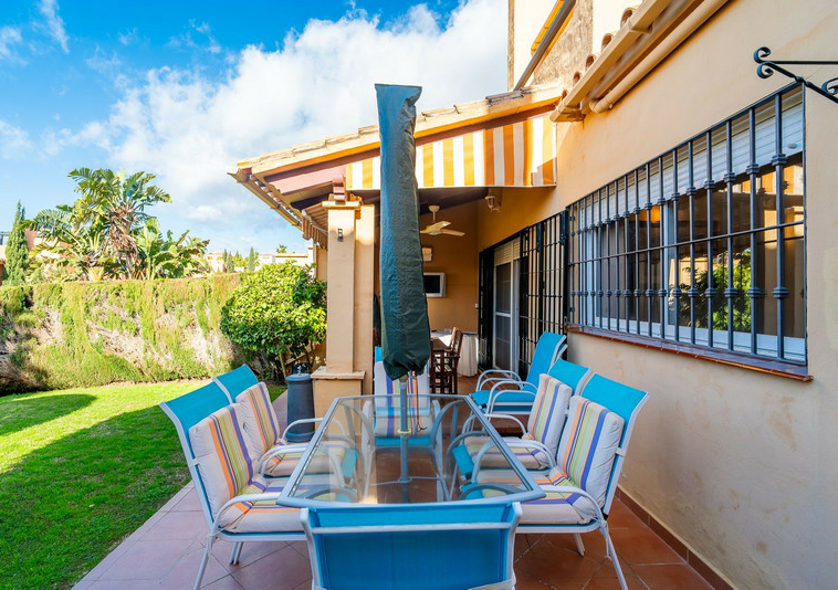 La vivienda cuenta con 4 habitaciones, 3 baños, un amplio salón y una cocina equipada, perfecta para reuniones familiares. Disfruta de la luz natural en cada rincón, con un balcón y un porche delantero que invitan a relajarse. Además, incluye comodidades como aire acondicionado, chimenea, y acceso a una piscina común, todo en un entorno accesible y seguro.