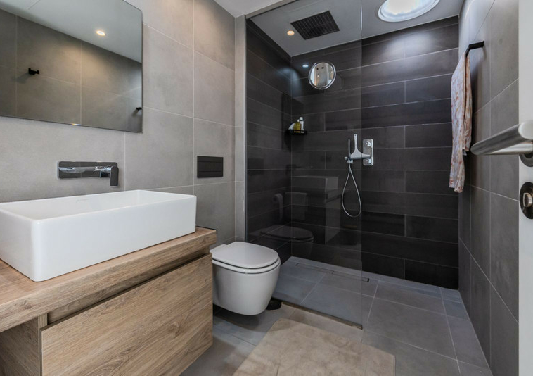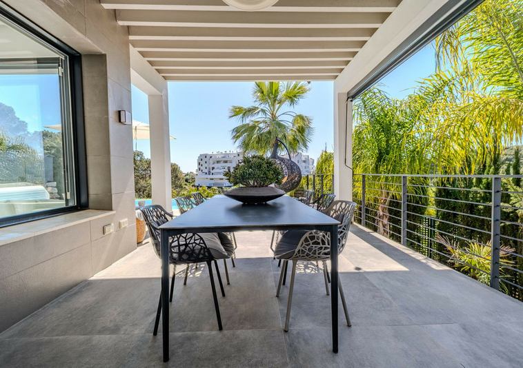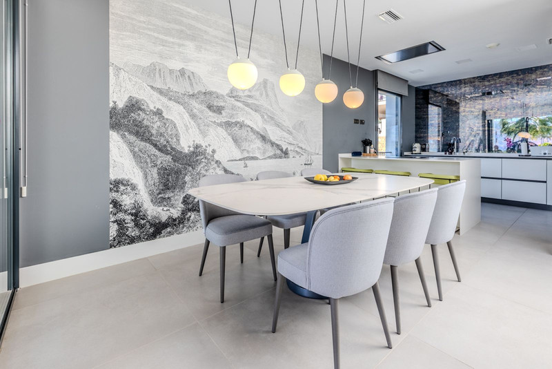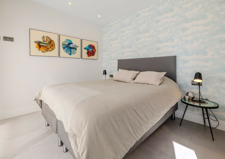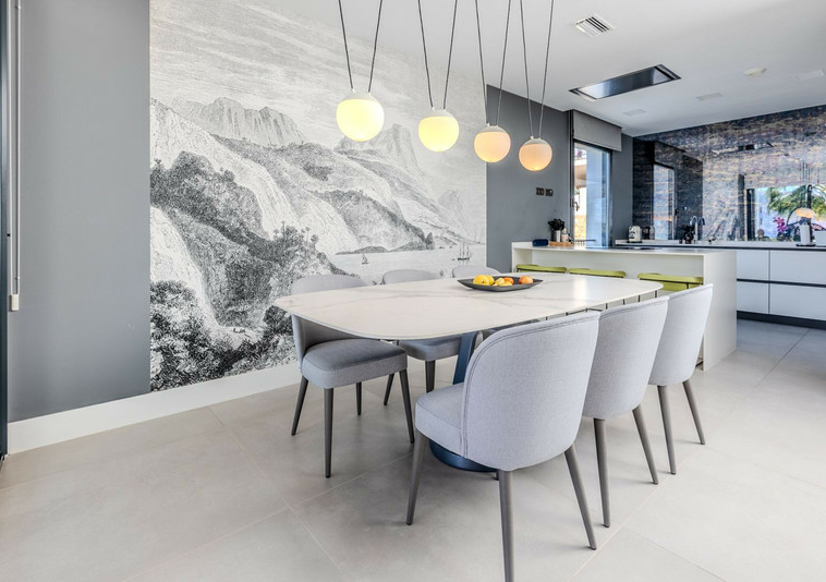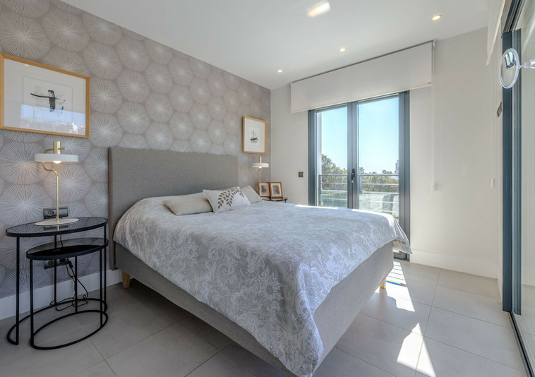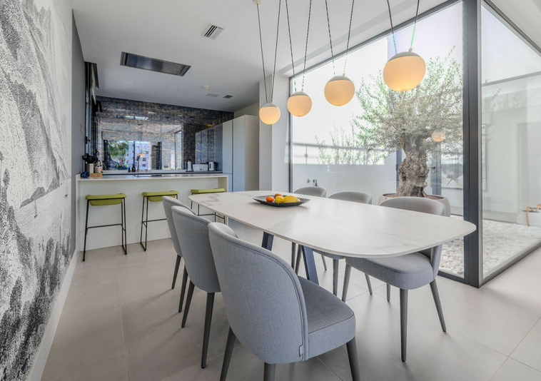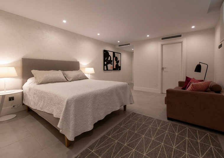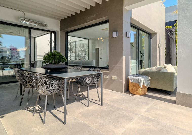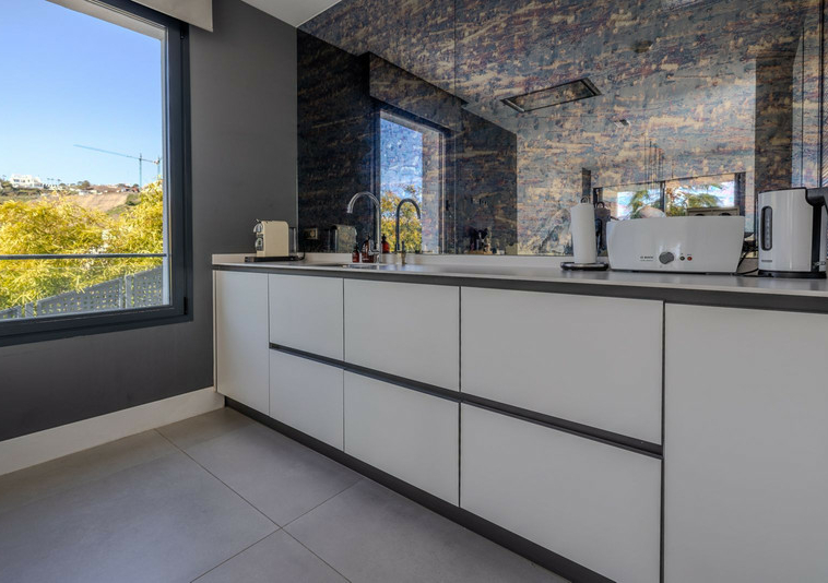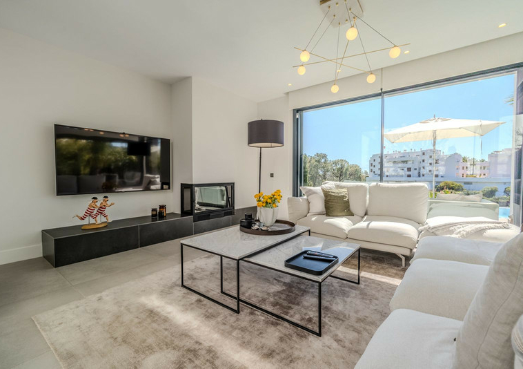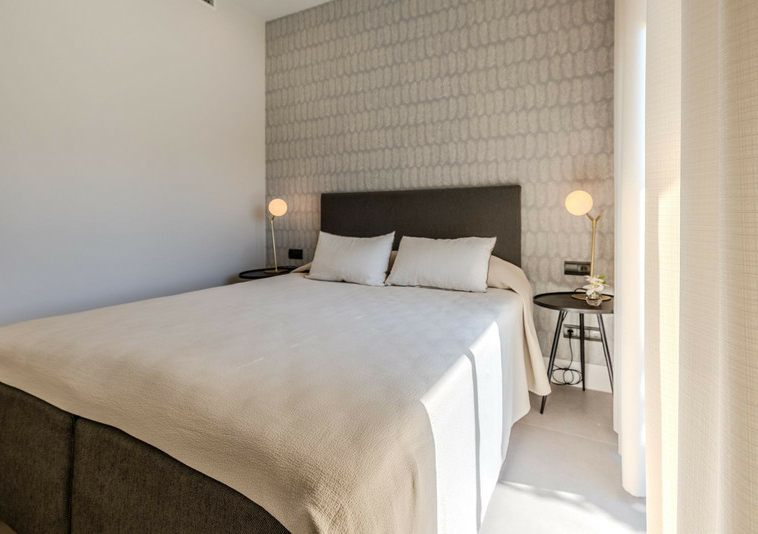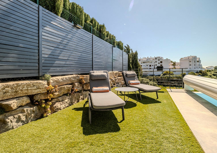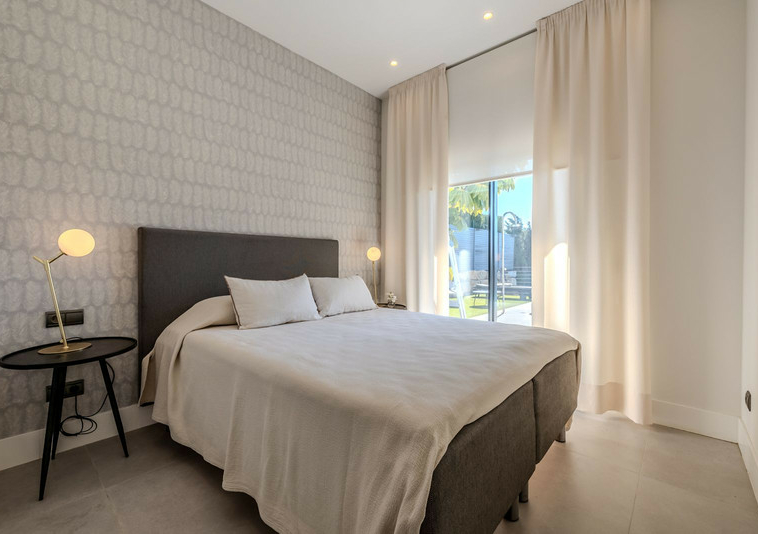 En la planta baja nos encontramos el hall de entrada que da acceso al amplio y luminoso salón y la moderna cocina abierta con salida al jardín y la piscina privados, también disponemos de un dormitorio con baño en suite y un aseo para invitados.