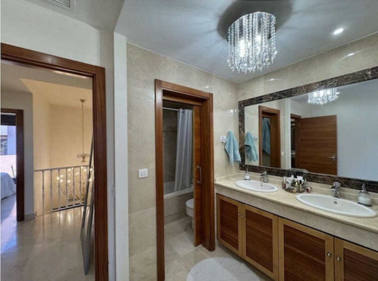 En la segunda planta, encontrarás tres amplios dormitorios con armarios empotrados y dos baños, con suelo radiante, brindando confort en todo momento. Además, las rejas en las ventanas ofrecen seguridad y tranquilidad. La propiedad también cuenta con amplias terrazas donde disfrutar del sol y dos piscinas comunitarias para refrescarte en los días calurosos.