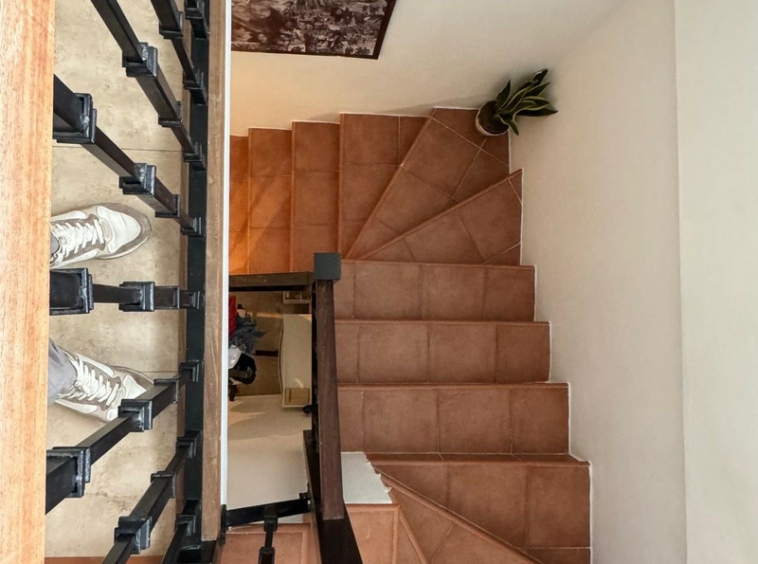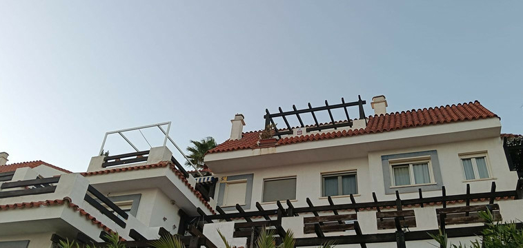 Se accede al dúplex por la parte delantera, en la planta baja, mientras que la parte trasera, con vistas al mar y al entorno, está situada más arriba, de ahí que se trate de un ático. Las plazas de aparcamiento cubiertas tienen una superficie total de 82 m², por lo que aparcar 1-2 coches no supone ningún problema. Estas se encuentran al otro lado del apartamento, a pocos metros de la entrada del mismo.