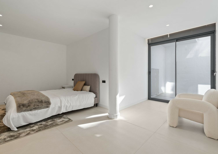 La distribución en dúplex mejora la sensación de amplitud y permite una clara separación entre las zonas de día y de descanso, mientras que los grandes ventanales proporcionan abundante luz natural en toda la vivienda.