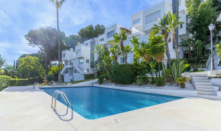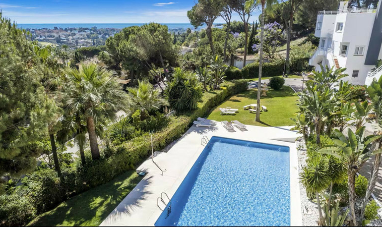 Este hermoso apartamento esquinero se encuentra entre pinos, ofreciendo un entorno verdaderamente tranquilo, pero a la vez muy cerca del corazón de Nueva Andalucía, a solo minutos de prestigiosos campos de golf, Puerto Banús y de los mejores restaurantes y boutiques de Marbella. Desde el momento en que se entra, las vistas panorámicas al Mediterráneo y a la montaña de La Concha captan toda la atención, creando una sensación de hogar inigualable. Un acceso privado proporciona acceso directo a la propiedad, y los fantásticos espacios exteriores cubiertos permiten disfrutar del clima de la Costa del Sol durante todo el año.