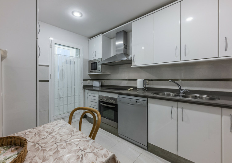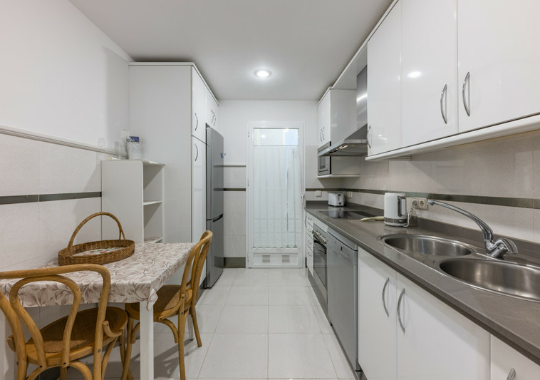 La distribución de esta hogar es tan relajada como funcional. El salón y el comedor, inundados de luz natural, crean un ambiente abierto y acogedor, ideal tanto para veladas como para reuniones sociales. Desde la terraza cubierta de la cuarta planta, bañada por el Sol, se disfruta de amplias vistas parciales al mar y la montaña, saboreando un espacio perfecto para relajarse. La cocina está completamente equipada con lavadero independiente.