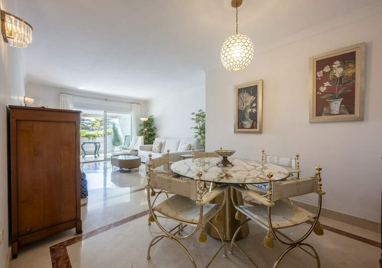 El encantador apartamento de dos dormitorios es más que una simple residencia. Se encuentra situado en uno de los enclaves mas demandados y lujosos de Marbella, a dos pasos de la playa y de los chiringuitos y locales de ocio de moda como el prestigioso Cappuccino del hotel Don Pepe, sin olvidar que esta a cinco minutos a pie del Casco Antiguo de la ciudad.