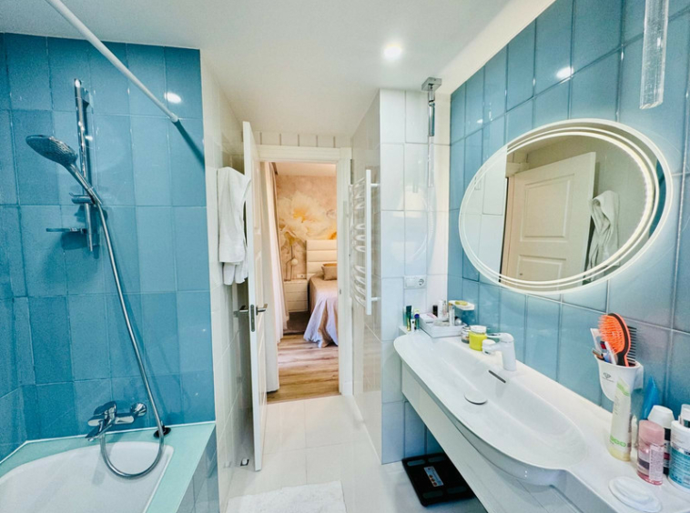 El interior se organiza en un hall-distribuidor que da acceso a una cocina, un aseo, un salón-comedor y otro distribuidor. El área de descanso incluye un dormitorio con baño propio, un dormitorio principal con baño principal, y un segundo dormitorio también con baño propio. Completan la disposición un lavadero, una terraza cubierta y una terraza descubierta, asegurando comodidad y funcionalidad en todos sus espacios.
