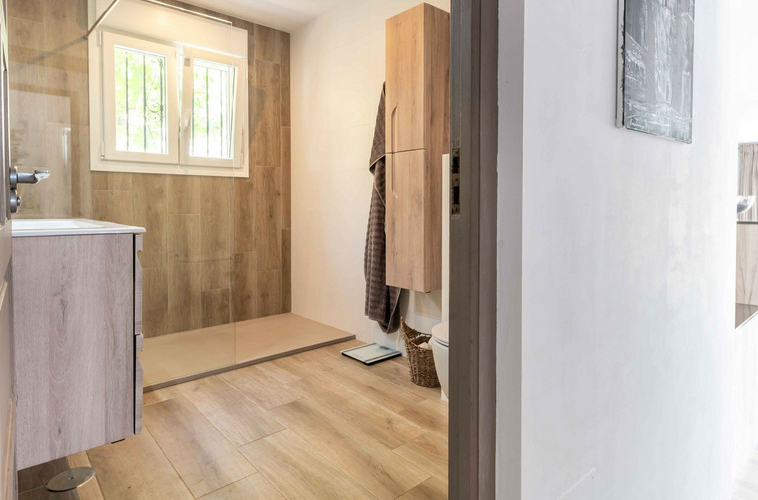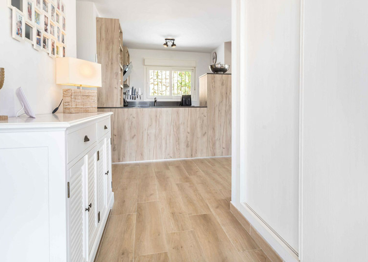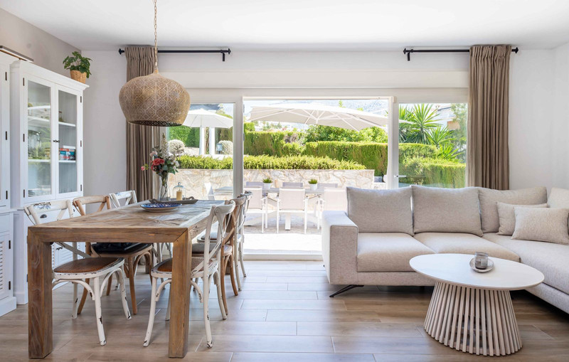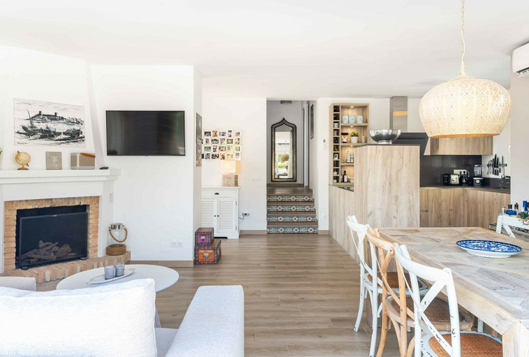 En el interior encontrará 3 dormitorios, 2 baños de estilo escandinavo recién renovados, una cocina americana nueva, un lavadero, un comedor abierto y un salón con chimenea y puertas correderas de cristal de suelo a techo con acceso a una de las terrazas más amplias.