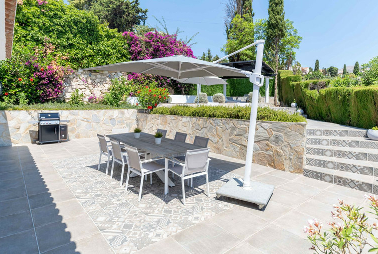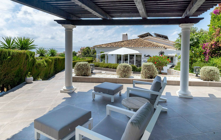 La villa ofrece total privacidad e impresionantes vistas al mar y a la montaña desde sus numerosas terrazas.
